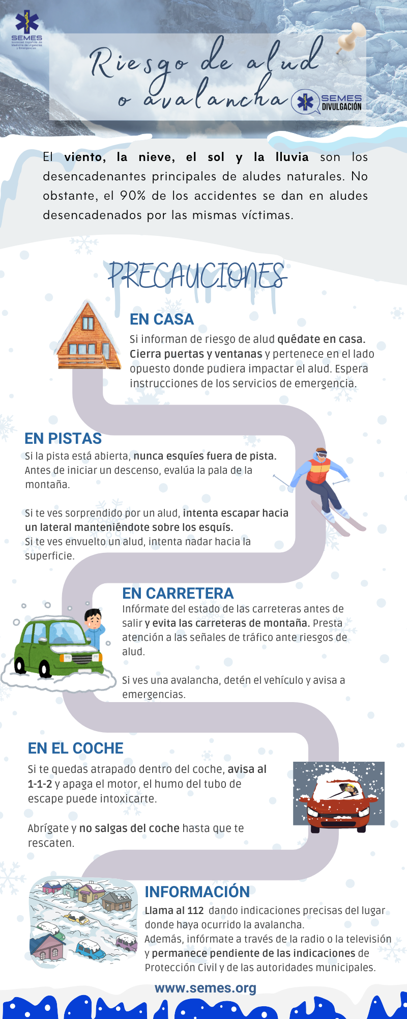18 de marzo de 2024Prevención riesgos y enfermedadesAlud, Nieve El viento, la nieve, el sol y la lluvia son los desencadenantes principales de aludes naturales. Riesgo de alud o avalancha Navegación de entradas Día Europeo para la prevención del riesgo cardiovascularDía mundial del agua